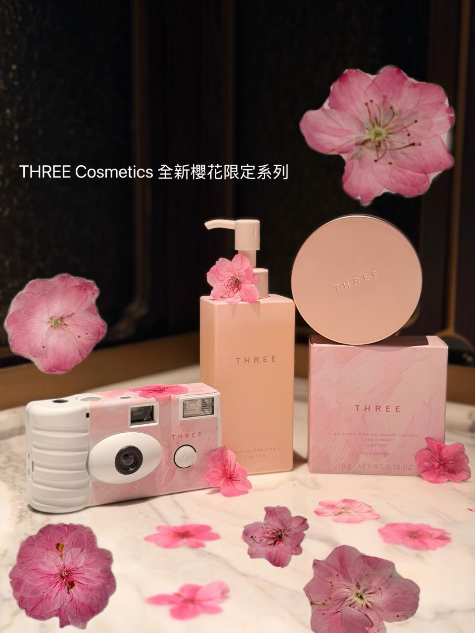 【美妝】顏控必收!THREE櫻花限定美妝|回購N遍的平衡潔膚油+柔光蜜粉,購物滿額送春日菲林相機